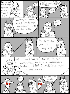 Haha, anyway, this character also underwent some pretty noticeable cosmetic changes from the original design. Maybe I'll draw both versions like I did with Silent C. Anyway, I've rambled far too much, and I hope the comic is enjoyed.